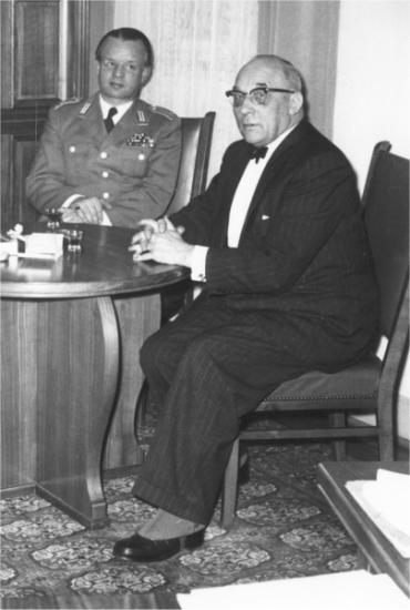 | Major Krieg im Gespräch mit Bürgermeister Trautmann. |