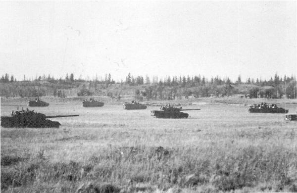 Schützenpanzer und Kampfpanzer im Scharfen Schuß in Silo (Kanada). (Bild: 31 KB)