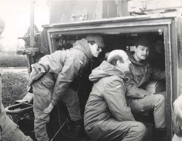 | Der Zugführer der 2./361 - Lt. Jimmy Hartwig - mit seinem Melder - OG Schlicksupp - vor dem letzten Angriff bei der Übung "Reforger 1988". (Bild: 62 KB) |